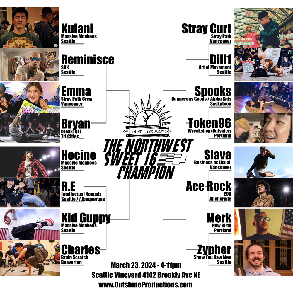 Fill out a bracket at the jam and turn it in before 7:30pm for a chance to win $100 (You don’t need to know any of the dancers, guessing is perfectly fine).