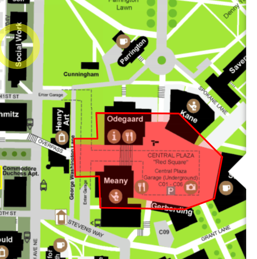 There is free parking at the UW Central Plaza “Red Square” parking lot after 12pm on Saturdays, and it is a 4 block walk to the venue.