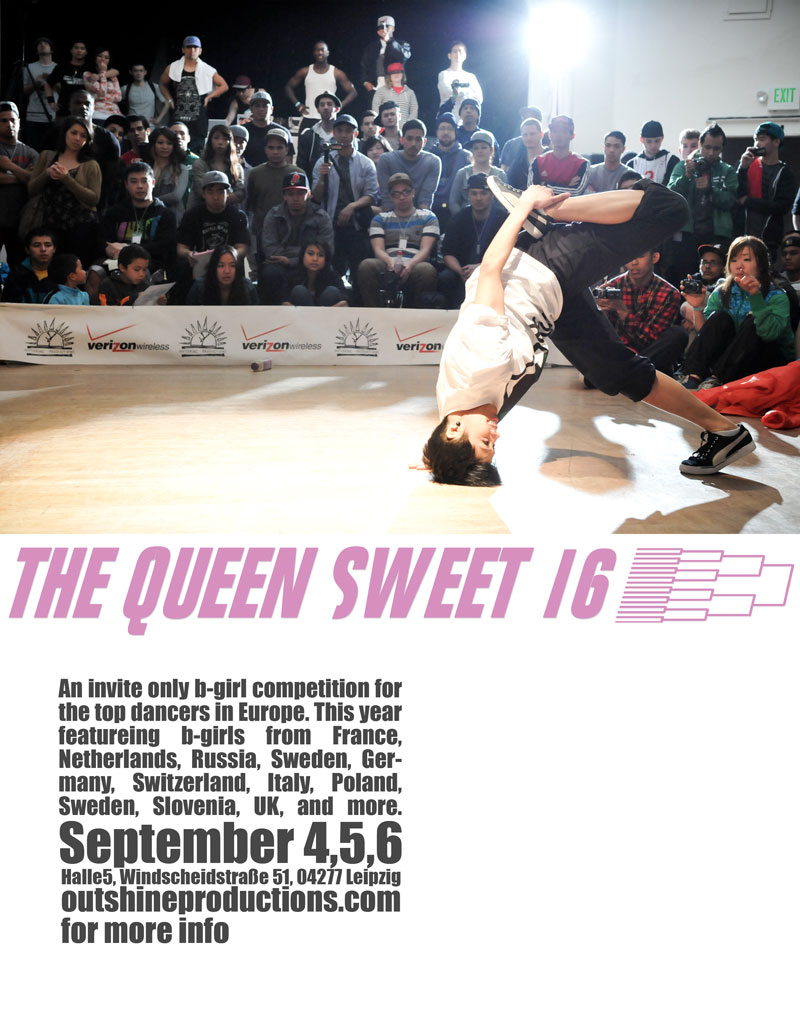 Yes yes yall! Queen Sweet 16 happening this year in Germany. B-girls from all over the continent! Event page HERE, Facebook page HERE.